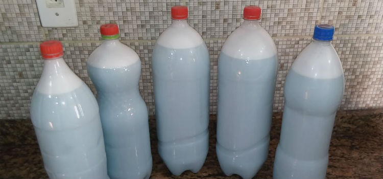 - Coloque em uma garrafa PET e deixe descansar por 24 horas antes de usar na lavagem das roupas. Antes de usar, agite bem.