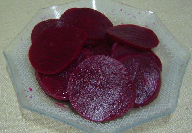A primeira dica é uma forma de fazer a beterraba em conserva. É temperada com vinagre, sal e açúcar, depois pode ser armazenada em frascos e fica na geladeira por 15 dias para comer ao longo de duas semanas.