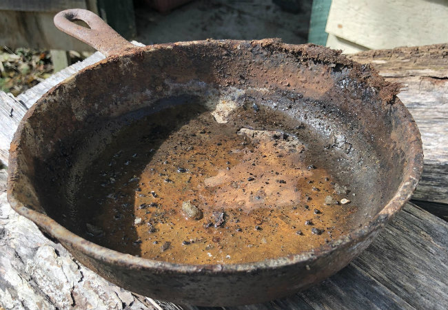 Kat diz que sentiu quase que como uma missão de vida: ela precisava salvar aquela frigideira de ferro fundido. E aí começou a jornada. Primeiro ela lavou-a e, então, analisou a situação. Ainda estava inutilizável, por isso ela resolveu publicar algumas fotos nas redes sociais e pedir ajuda aos amigos.