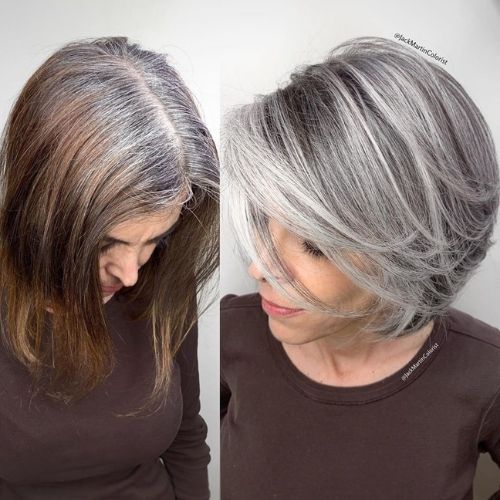 Cada mulher pode ter o comprimento de cabelo que quiser, seja longo ou curto, reto ou repicado, inteiro ou com franja. Mas, o fato é que faz toda diferença dar uma renovada no corte quando for pintá-lo de cinza, deixando as pontas aparadas e dando um toque extra na transformação.