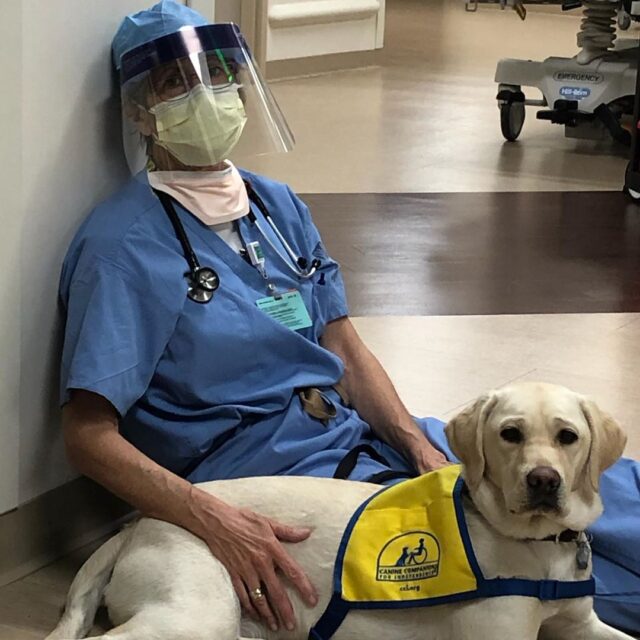 Sabendo disso, a Dra. Susan Ryan, que atua na emergência do Rose Medical Center, já estava há algum tempo levando sua labradora Wynn para ter contato e se acostumar com os pacientes, para posteriormente servir como cão de terapia a eles.