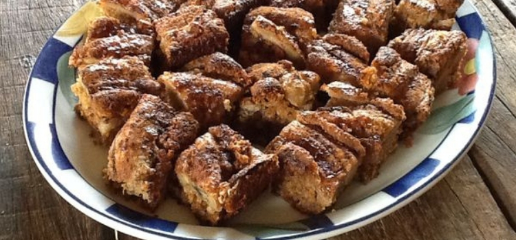 - Misture a canela reservada com o açúcar e polvilhe sobre a torta.