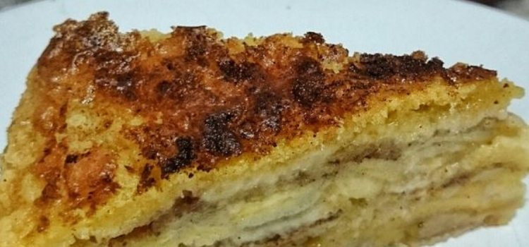 Essa é uma versão diferente da Banoffee, mesmo que leve doce de leite. Fica com a massa bem fofa da metade para cima e na metade de baixo estão as bananas com o doce de leite. O iogurte complementa tanto no sabor quanto na textura. Veja a receita compartilhada do Receitas e Temperos.