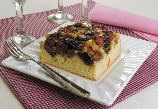 Nessa receita, a ricota entra na hora de fazer a massa, que é de liquidificador. Depois de batê-la, é só colocar em uma tigela untada e enfarinhada e distribuir o refogado com beringela frio por cima. Leve ao forno médio até dourar e firmar. Está pronto para colocar na mesa!