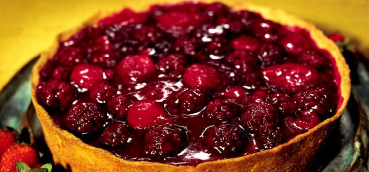 As frutas vermelhas podem ser morango, amora, framboesa, mirtilo e cereja, por exemplo. Fica uma torta de apresentação muito bonita. Veja essa receita do Guia da Cozinha.