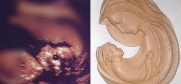 Então quando foi fazer um ultrassom de rotina durante a quinta gravidez, 15 anos atrás, e a imagem chocou a todos. Na imagem dava para ver a Santíssima Virgem de forma nítida, segurando seu quinto filho nos braços. A imagem é tão incrivelmente perfeita que é possível ver detalhes do rosto da Santa, como nariz, boca e seu manto sobre a cabeça.