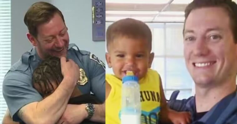 O pequeno Matthew foi salvo pelo pronto atendimento do policial, e eles até bateram uma foto juntos para a posteridade.