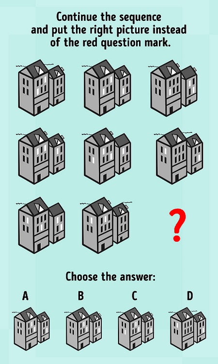 Continue a sequencia e coloque o prédio certo no lugar do ponto de interrogação.
