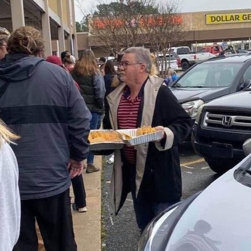1. Este senhor estava distribuindo um lanche para os pais aflitos que aguardavam seus filhos sem poder entrarem na escola