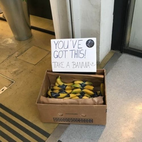 2. Alguém sabia que os alunos em fase de provas finais precisam de energia extra e resolveu oferecer bananas na porta da biblioteca