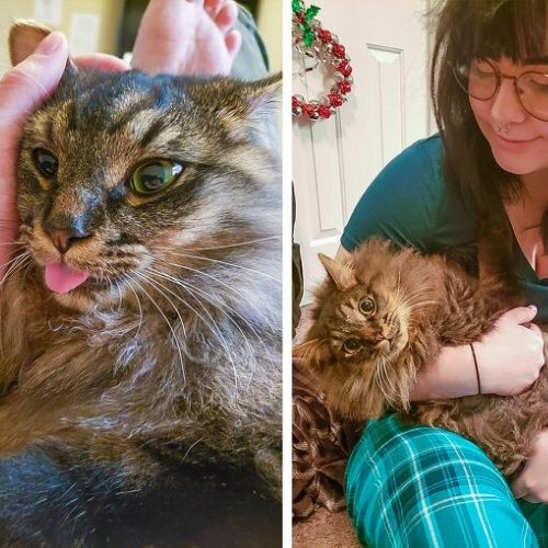 18. Este gatinho foi adotado e seus novos tutores descobriram que ele tinha sido criado junto com cachorros. Por isso que ele se comportava como um cão, abandando o rabo e mostrando a língua ao ganhar carinho