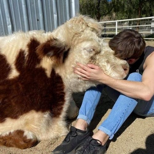 12. A vaquinha Aretha estava descansando feliz, cheia de gratidão, depois de ser resgatada por este rapaz