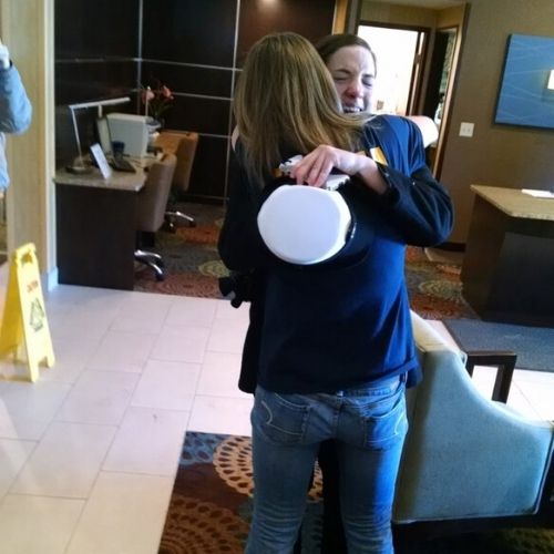 14. Ela achava que sua irmã não poderia estar presente na sua formatura da marinha, mas foi surpreendida no hotel, pouco antes da cerimônia