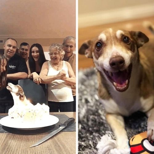 9. Esse cãozinho não poderia estar mais feliz na sua festa de aniversário!