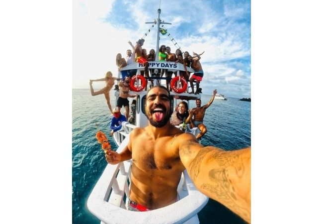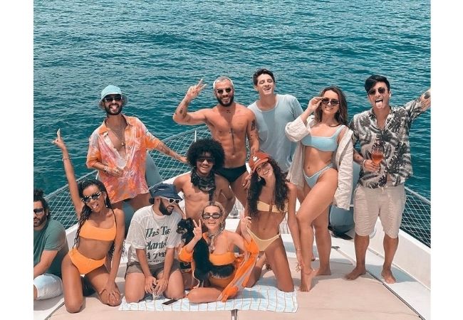 Caio Castro e Grazi Massafera não se contentaram em estar sozinhos dentro desse barco. Nada de desperdiçar espaço. Só não tem espaço para as máscaras!