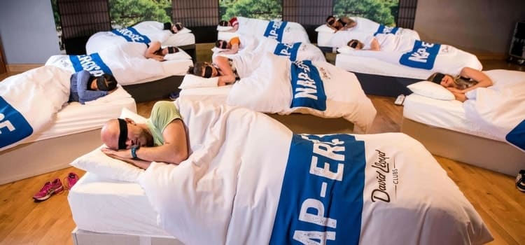 Nas aulas os alunos alongam o corpo por 15 minutos e deitam-se para dormir por mais 45 minutos. O ambiente é climatizado, as camas são confortáveis, você só precisa se sentir à vontade dormindo no mesmo “quarto” com várias outras pessoas.