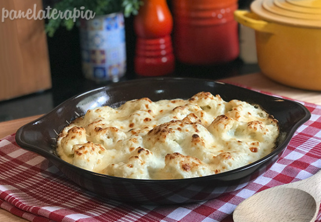 Para um acompanhamento rápido, neutro e delicioso, opte por essa receita que é feita com molho branco e queijo parmesão, sobre a couve flor já cozida, apenas dourando no forno.