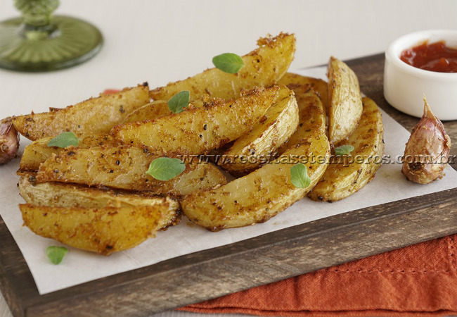 Para contrapor as receitas mais leves e dar aquele sabor especial ao seu prato, as batatas rústicas ficam aromáticas e crocantes. Veja essa sugestão do Receitas e Temperos.