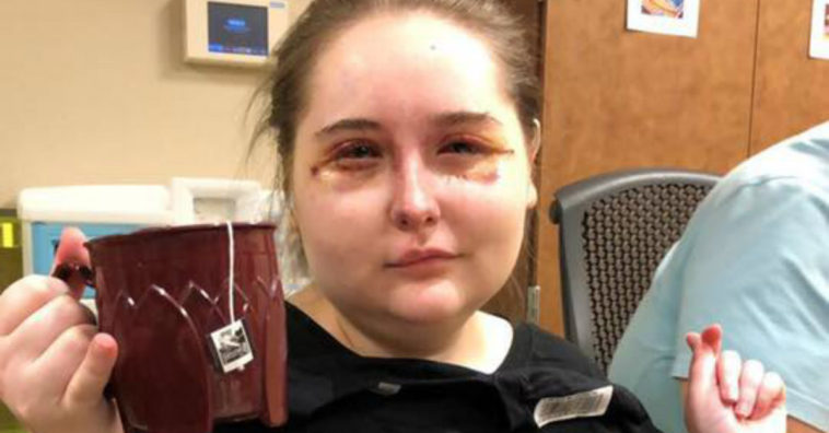 Ela passou quatro horas aguardando atendimento, o que fez com que seu rosto começasse a inchar e seus olhos, a sangrar, devido o aumento da pressão. Seus nervos óticos não suportaram e ela acabou ficando cega irreversivelmente, depois de passar por alguns procedimentos de emergência para reduzir a pressão.