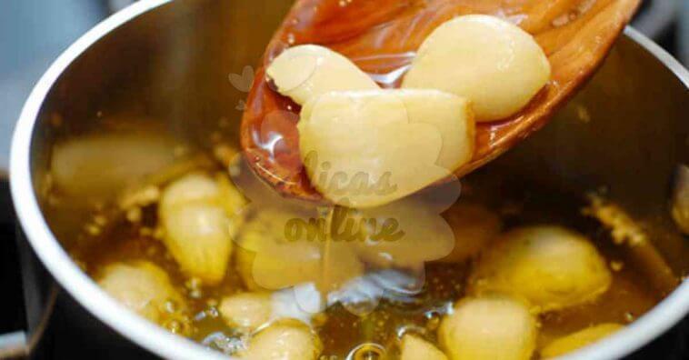 - Coloque num frasco de vidro 250ml de cachaça com o alho triturado;