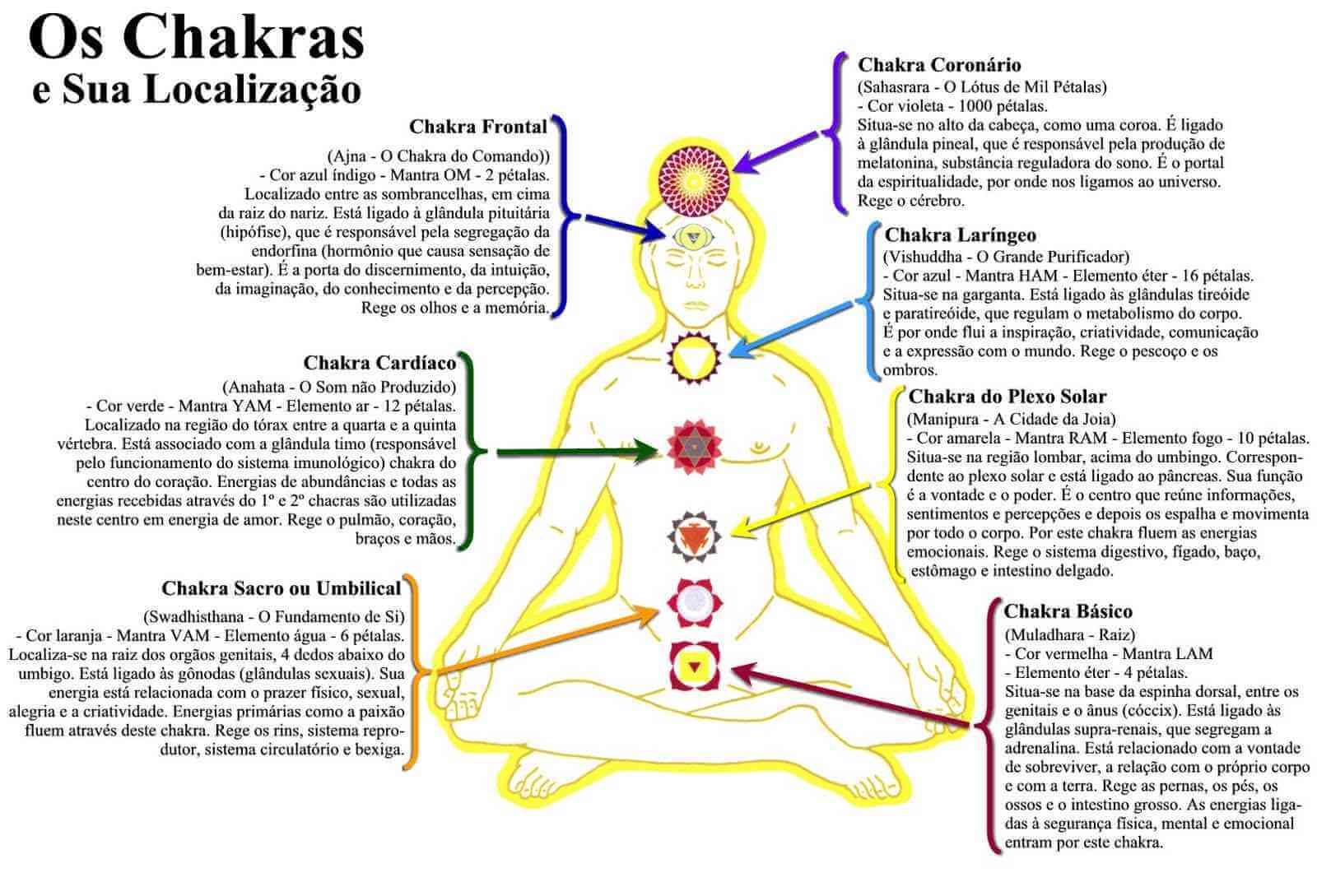 Possuimos 7 chakras em nosso corpo, são eles (clique na imagem para aumentá-la e ler):