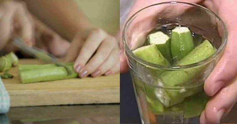Como conseguir um resultado positivo? Pegar em dois quiabos, retirar as pontas, partir ao meio e colocar em água. Depois da água entrar nos poros do quiabo e libertar o muco, fica pronta a água do quiabo contra diabetes.
