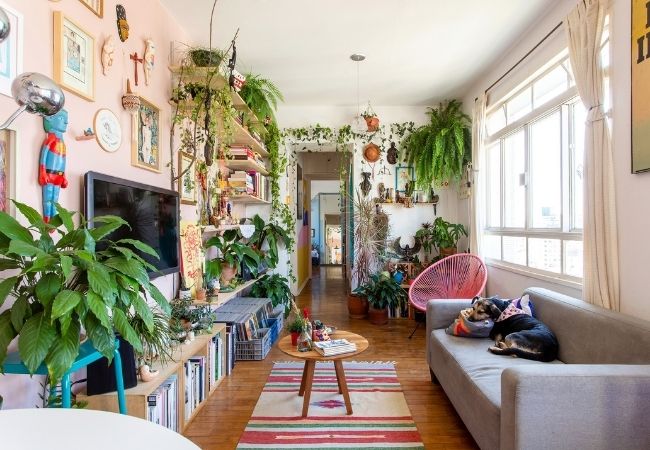 Certamente, as plantas deixam seu apartamento muito mais acolhedor e com cara de casa. É importante que elas sejam adequadas ao nível de luminosidade disponível, sendo plantas adequadas para interiores. Se cuidar de plantas não é o seu forte, então abuse das estampas de folhagens e flores, nas almofadas, objetos e quem sabe, seu papel de parede.