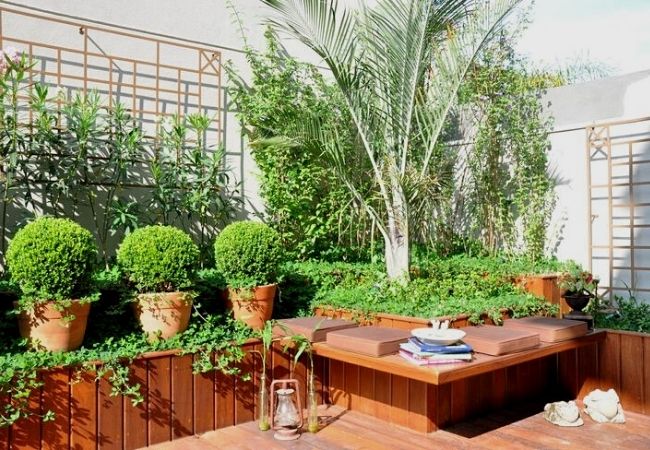 Você pode aproveitar o espaço da varanda para fazer um pequeno quintal ou jardim. Para tanto, use piso de deck ou pedrinhas. Além disso, as plantas são fundamentais, podendo ser feitas em jardins suspensos, canteiros elevados ou até mesmo com vasos. Capriche na decoração com futons, cadeiras e um pouco de rusticidade e pronto!