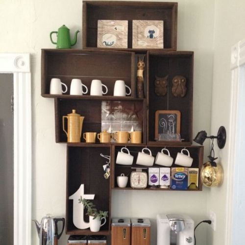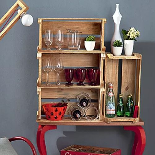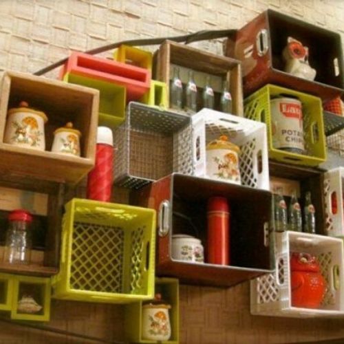 Se não quiser fazer um armário, pode pendurar os caixotes separadamente e fazer uma composição de nichos. Essa ideia funciona para salas, quartos, cozinhas e áreas de festas.