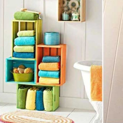 O seu banheiro também pode ganhar um armário organizador. Apenas lembre-se de selar as peças antes de aplicar pintura ou passe um verniz para evitar que a madeira absorva umidade e acabe mofando.