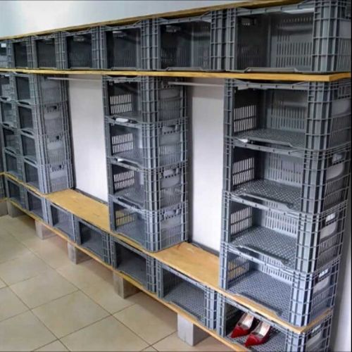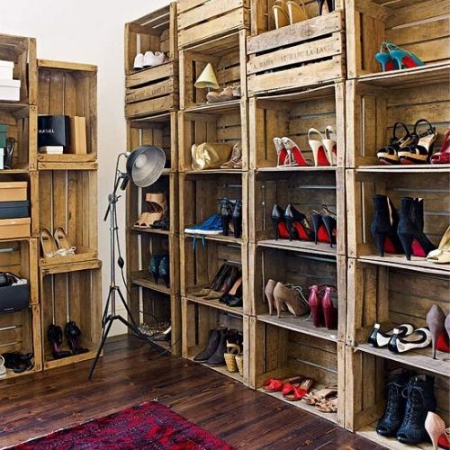 Tem uma grande quantidade de sapatos para guardar, ou então algum tipo de coleção que gostaria de organizar melhor? Essa ideia usando diversos caixotes para criar um grande armário é excelente.