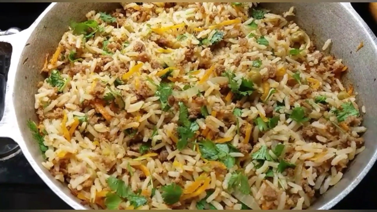 Essa receita fica um arroz mais sequinho, estilo arroz de carreteiro. Além dos dois ingredientes principais, leva também cenoura ralada, tomate, cebola, ervilha. Os temperos ficam ao seu gosto. Confira todo o preparo dessa receita, nesse vídeo do canal Tati Almeida: