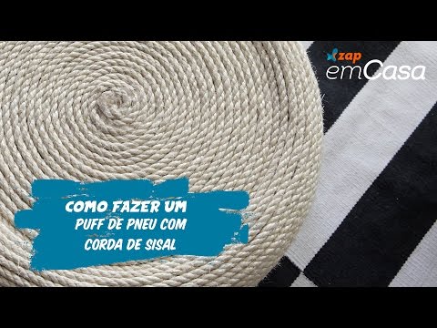 Para decorar a sala de casa ou uma área de lazer, os puffs feitos com pneu e corda de sisal deixam o ambiente muito convidativo e acolhedor. Vai precisar de pneu, sisal, um círculo de MDF, cola quente, seladora e pincel. Confira o passo a passo: