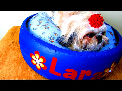 Essa é uma das ideias mais simples para fazer artesanato de pneu e o seu animal de estimação vai adorar. O corte do pneu é feito com a técnica da faca, nem precisa usar o detergente, caso não queira. Depois é só pintar e acolchoar por dentro.