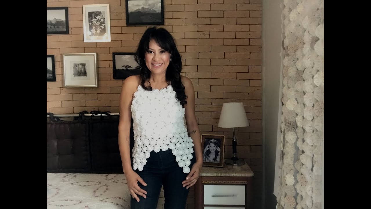 Já pensou em começar a criar peças de roupa com fuxico? Essa blusinha é cheia de estilo e fica linda para usar com uma calça jeans. Veja como fazer: