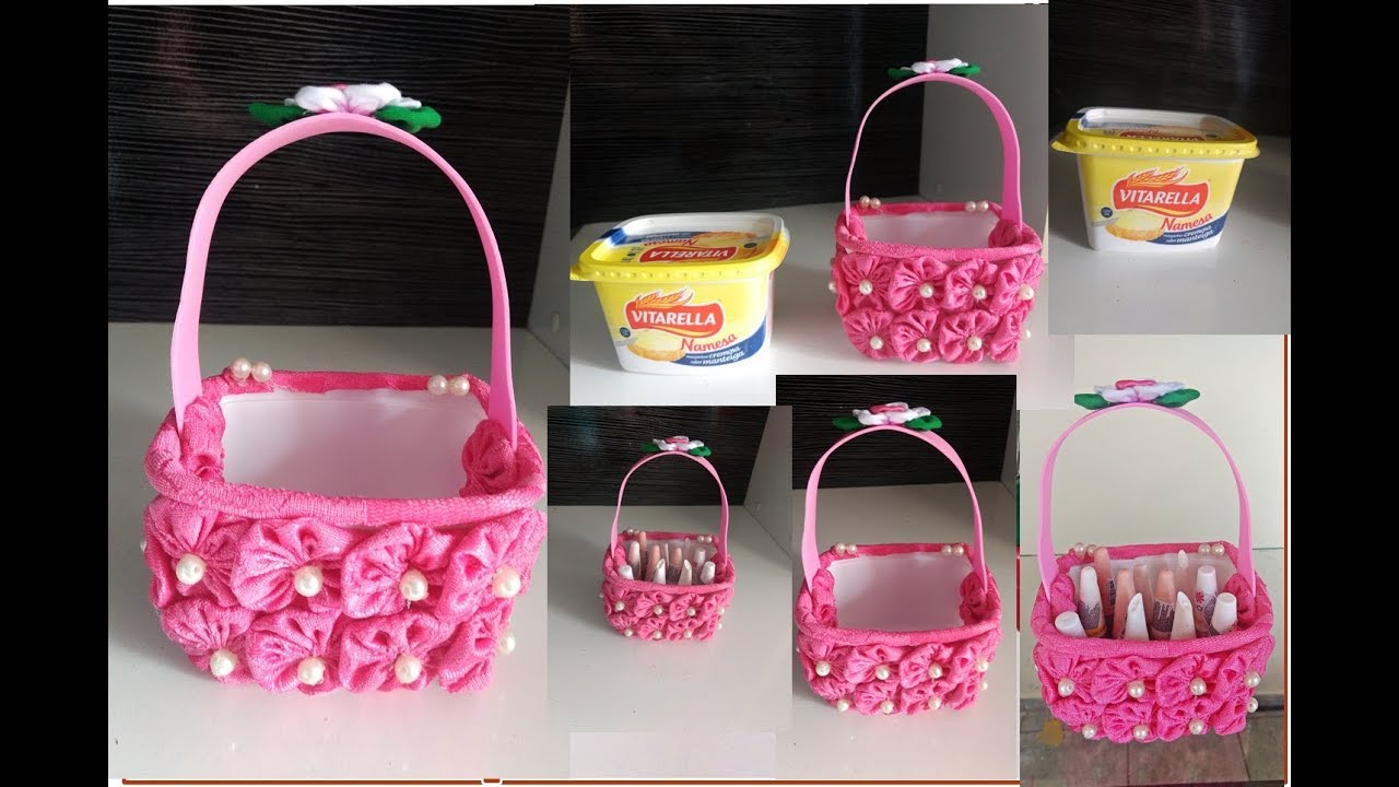 Guardou uns potes de margarina e de sorvete para reciclar e não sabe o que fazer com eles? Faça fuxicos e decore, transformando em potinhos multiuso para colocar em todos os cômodos da casa.