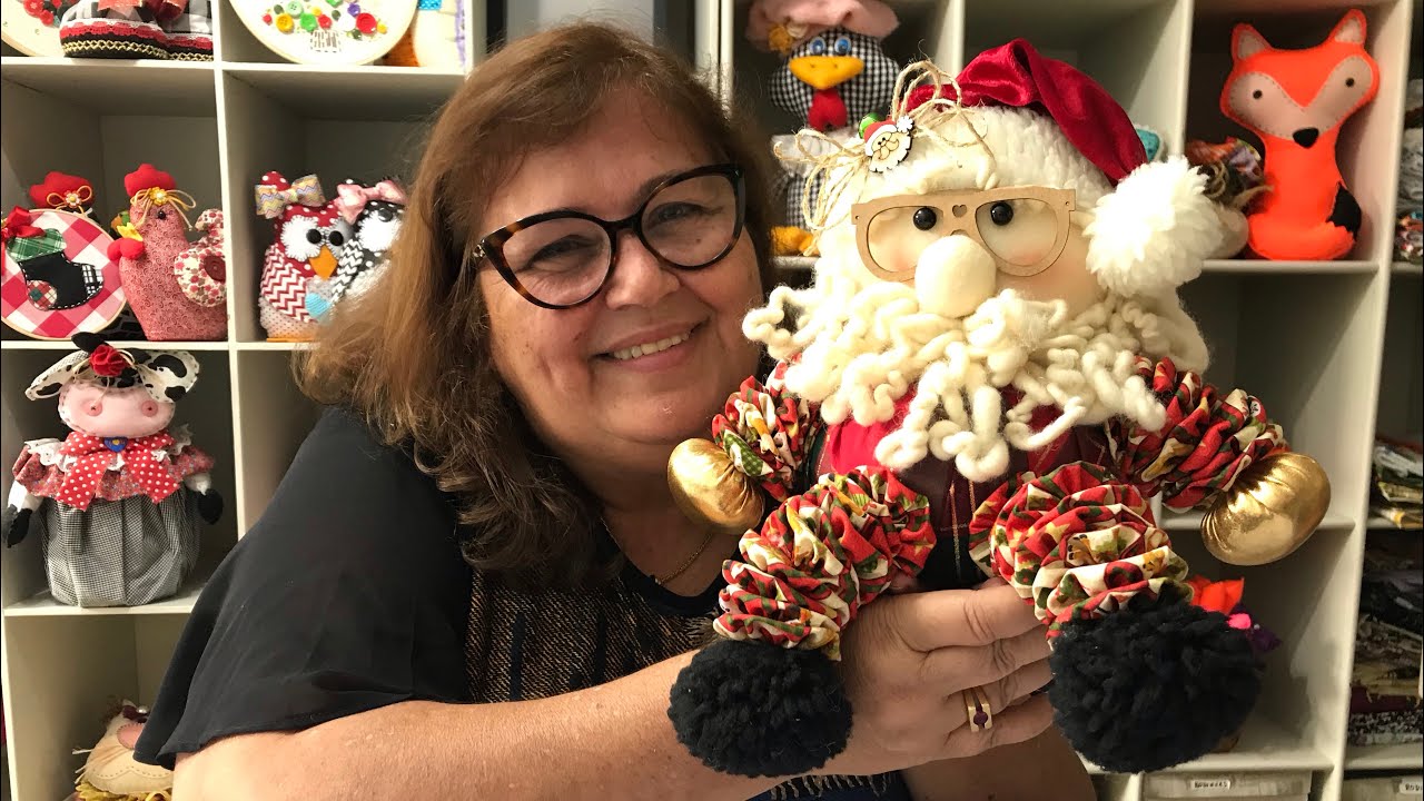 Para o Natal, você pode fazer um peso de porta personalizado. Aliás, esse Papai Noel fica tão lindo, que mesmo depois do Natal pode continuar decorando o seu atelier, sobre uma mesa ou na prateleira.