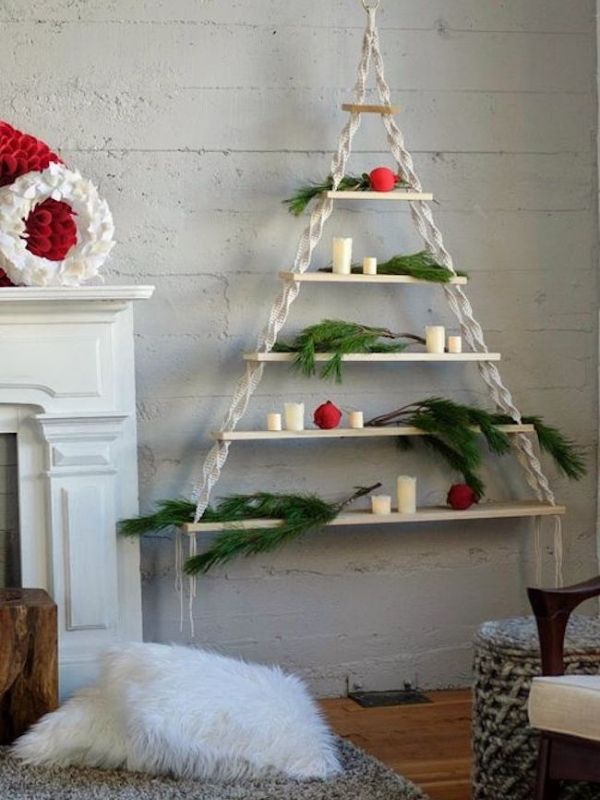 13. Até uma escada de madeira pode virar um pinheiro iluminado