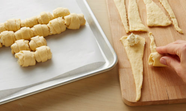 6. Faça um rolinho com a massa, enrolando da base até a ponta;