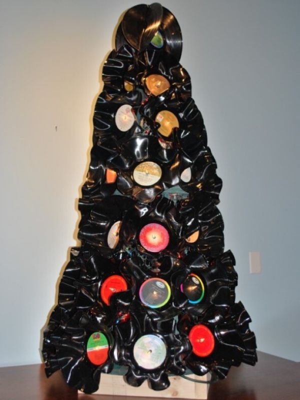 Já não sabe o que fazer com os discos de vinil que estão há anos guardados sem uso na garagem? Transforme-os em uma árvore de Natal inusitada. Nesse modelo, os vinis foram derretidos para ganharem um novo formato. Mas se quiser preservá-los, pode só fixá-los na parede em formato triangular.