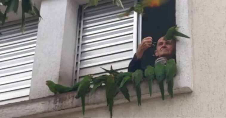 Aos 84 anos, Florêncio é conhecido por sua rotina peculiar e adorável. Duas vezes ao dia, ele se posta em sua janela, oferecendo sementes de girassol a dezenas de maritacas famintas. O espetáculo é uma sinfonia de cores e sons, à medida que as aves devoram suas refeições com entusiasmo, acompanhadas pelo barulho característico que ecoa pelo bairro.