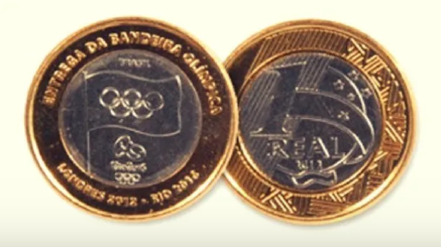 A moeda que comemora a passagem da bandeira olímpica de Londres 2012 para o Rio de Janeiro 2016 teve uma tiragem de apenas 2 milhões de exemplares e, por isso, se tornou a segunda moeda de 1 Real mais procurada no mercado, chegando a ser vendida por até 100 Reais.