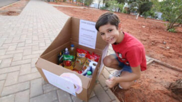 Menino de 6 anos faz “caixa solidária” para doar alimentos em Bauru (SP)