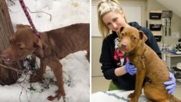 Cão amarrado na neve pede ajuda e recebe uma nova chance