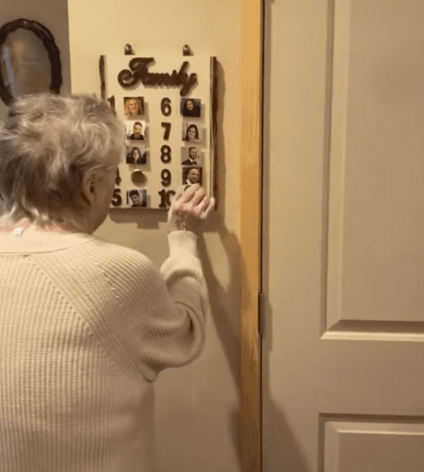 A avó contou sobre o presente: “Meu neto, Christopher, e sua namorada… eles fizeram e trouxeram para nós. Eles tinham os nomes e fotos de todos os primos, então penduramos em nossa casa.”