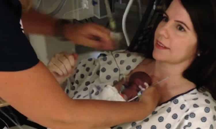 Depois de 128 dias de hospital e a eficácia do “cuidado canguru”, finalmente Naomi pôde ir para casa com sua família. No vídeo abaixo, que está em inglês, é possível ver o momento em que a mãe recebe sua filha no colo pela primeira vez.