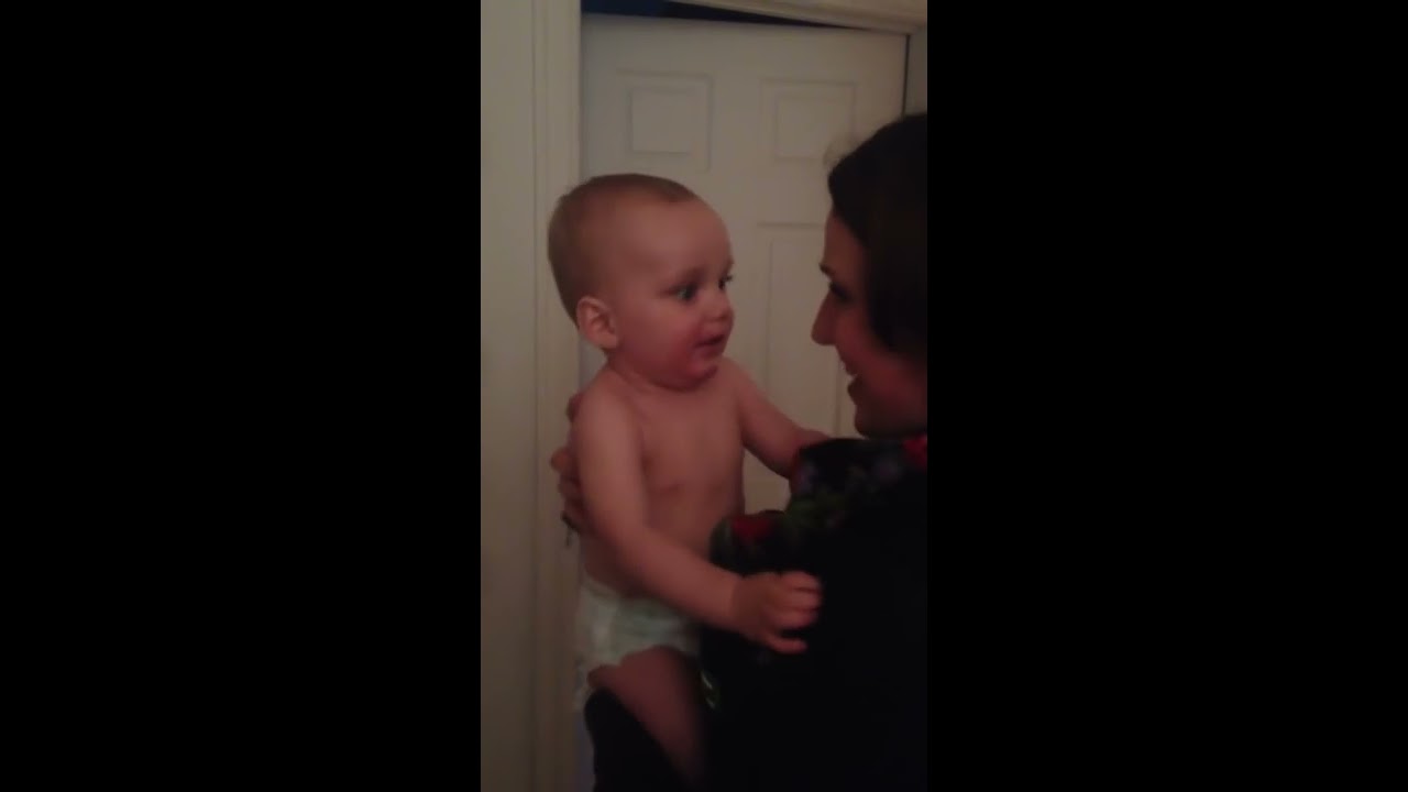 Ele estava muito feliz de ver “a Mãe” até ir para o colo dela e perceber que há algo diferente. Ele fica muito intrigado até ao fim do vídeo.