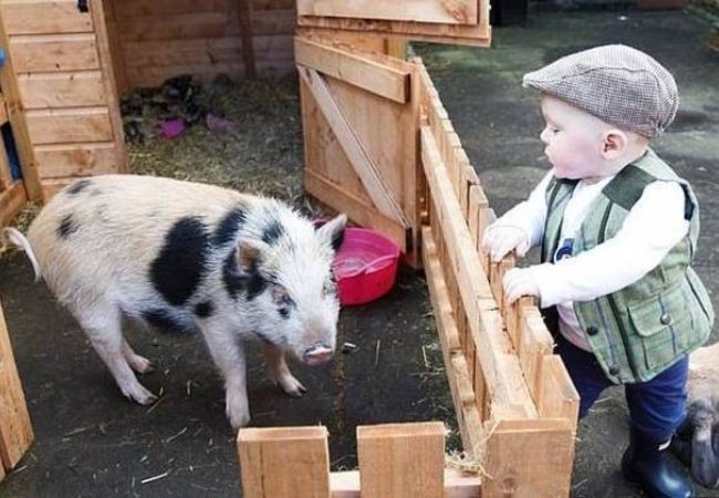 Então, pensando que seria bom seu filho se acostumar com um animal de estimação, Hannah teve a ideia de adotar um porquinho para seu bebê.