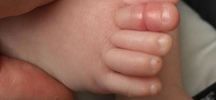 O bebê estava com o dedinho vermelho e inchado, causando um grande desconforto. Mas, o desconforto não seria a pior parte. Se Alex não tivesse descoberto a tempo aquele fio de cabelo preso, seu filho poderia ter 4 dedos do pé amputados por falta de sangue.