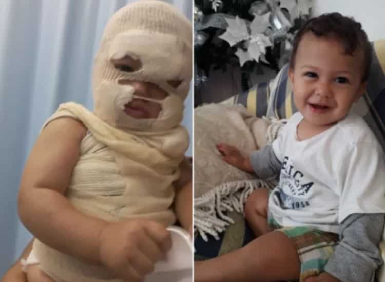 Assim que chegou ao Hospital Lorenzo foi para a UTI para tratar as queimaduras de 2º grau em todo o rostinho e em parte do tórax e abdômen.